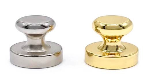 Perni a spinta a forma personalizzata -come sfere o cupole in acciaio oro/spazzolato-creano interessanti riflessi della luce.